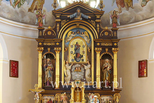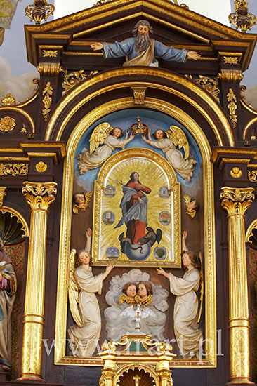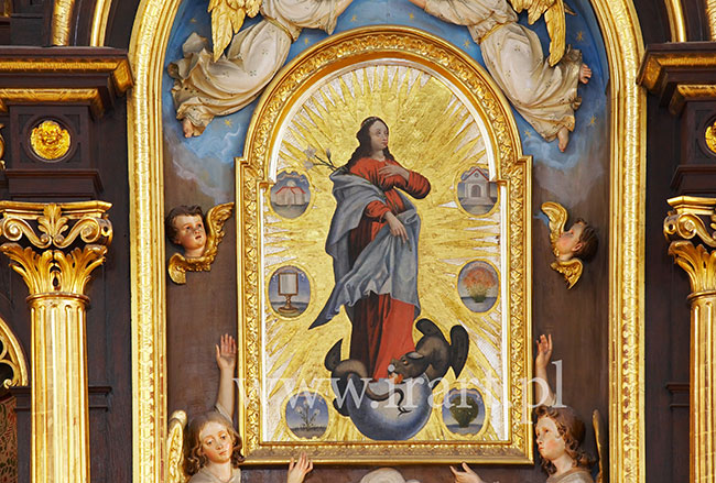 Napisy fundacyjne po polsku w lewym bocznym ołtarzu