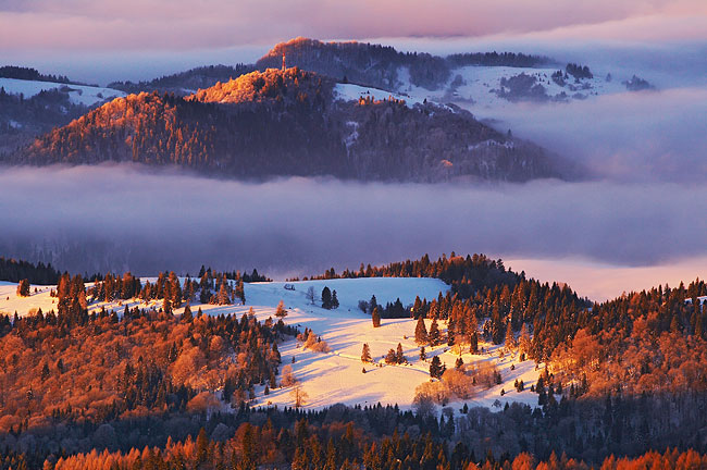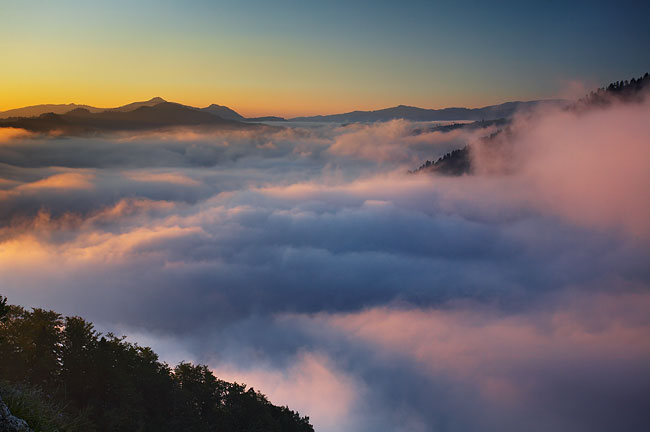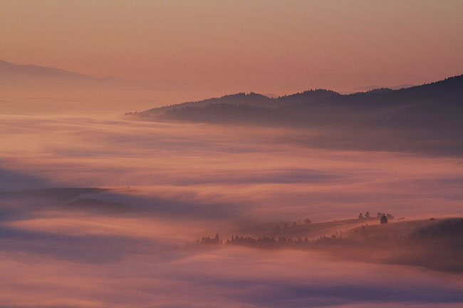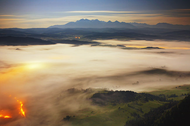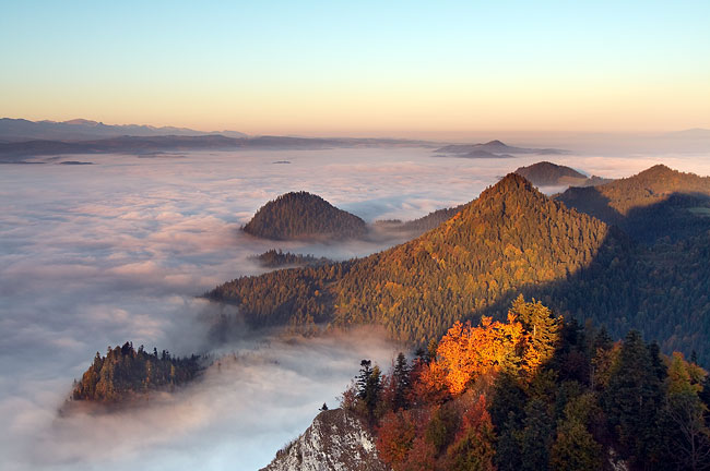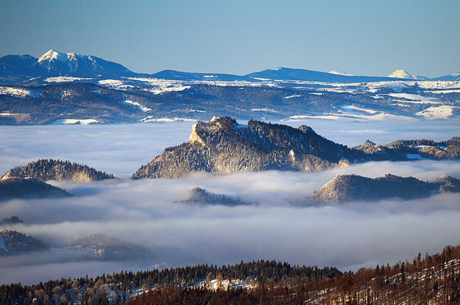 Pieniny "wystające" znad mgieł - w oddali Tatry